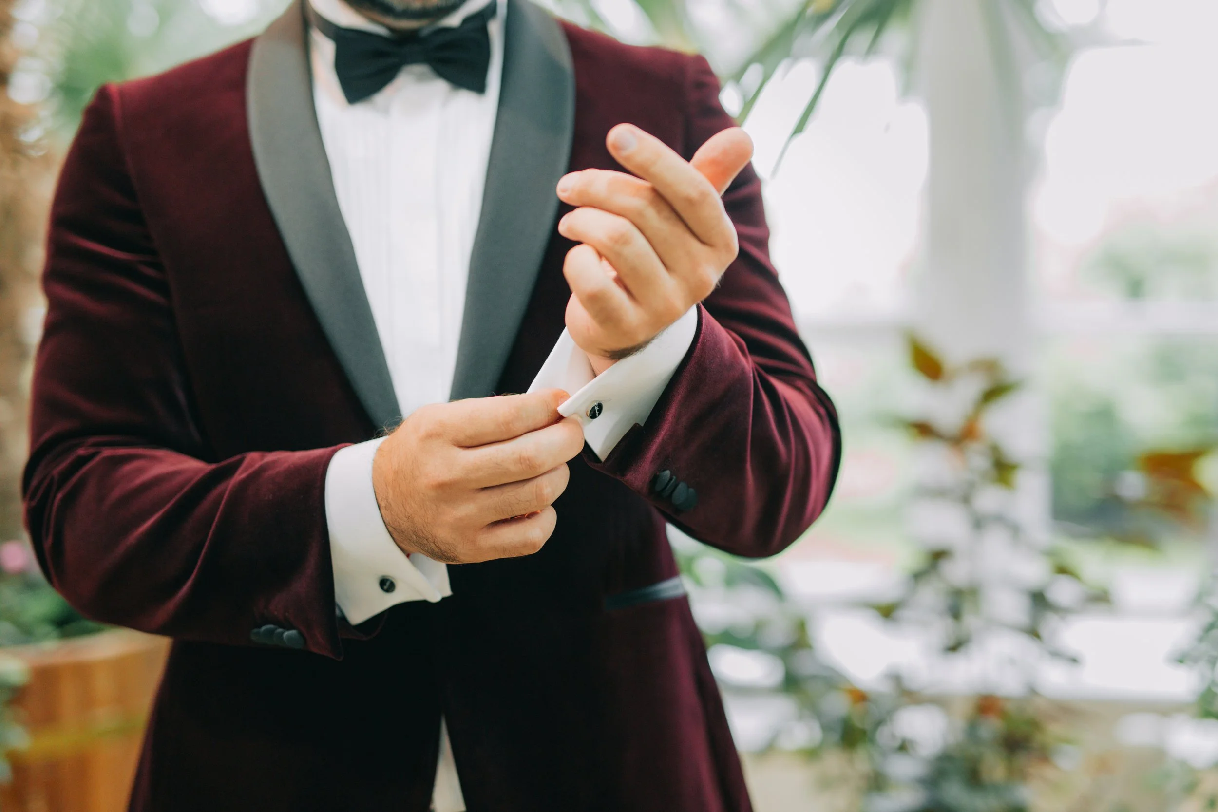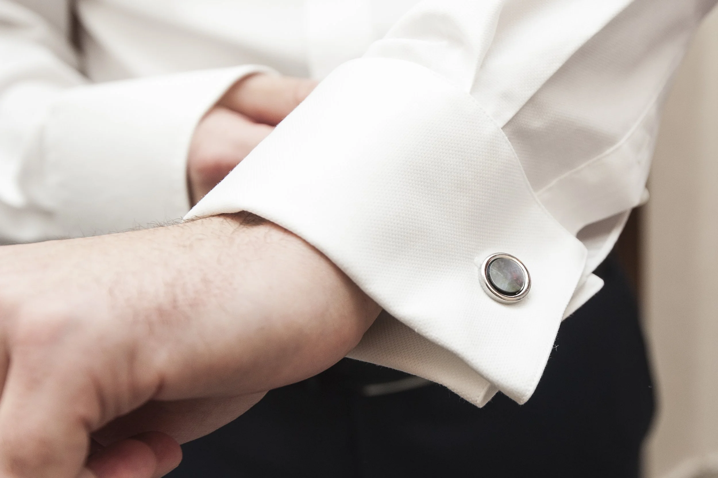 We love a classic tuxedo for how well it bridges dress clothes, formal wear, and celebratory garments. We always recommend a custom tuxedo jacket made and paired with custom-made dress pants without the traditional silk trim. That way the pants can be worn time and time again for work events, date nights, business casual events, etc. and the tuxedo jacket can be pulled out for special occasions. If you are looking for a tuxedo for your wedding, you can read more here.
